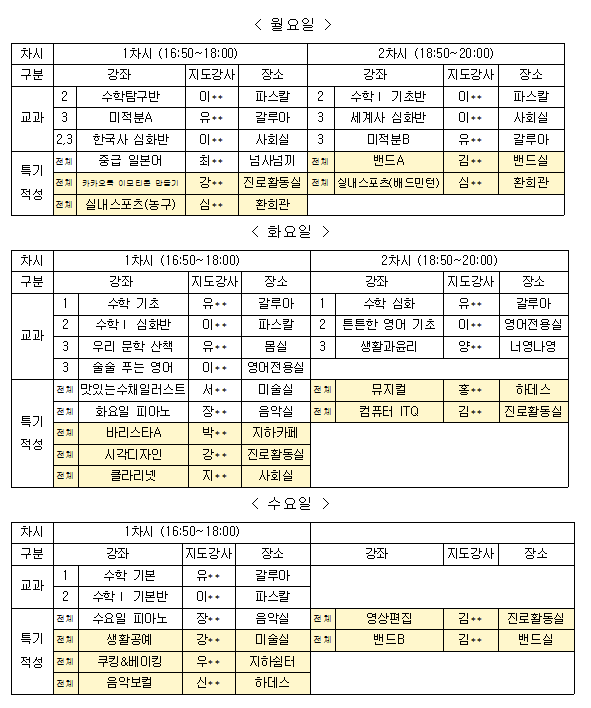 2024학년도 1학기 방과후 학교 계획 및 시간표