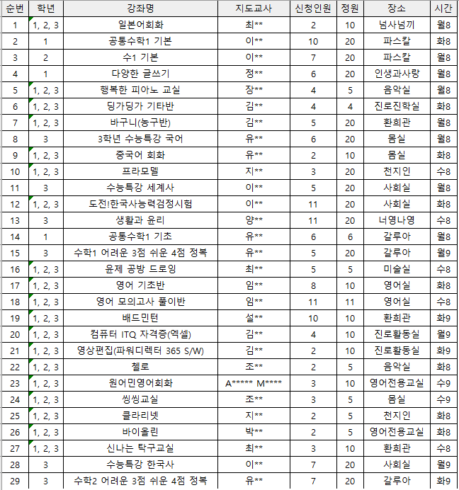 2024. 2학기 방과후학교 시간표