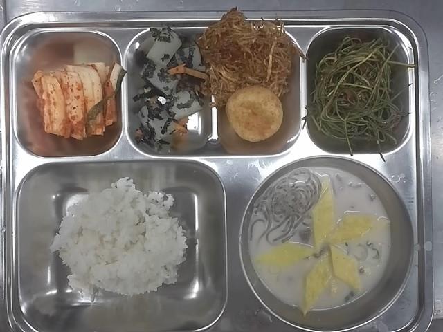 석식: 현미찹쌀밥, 설렁탕/당면사리, 뱅어포튀각, 세발나물생채, 청포묵김가루무침, 배추김치, 모짜렐라치즈볼