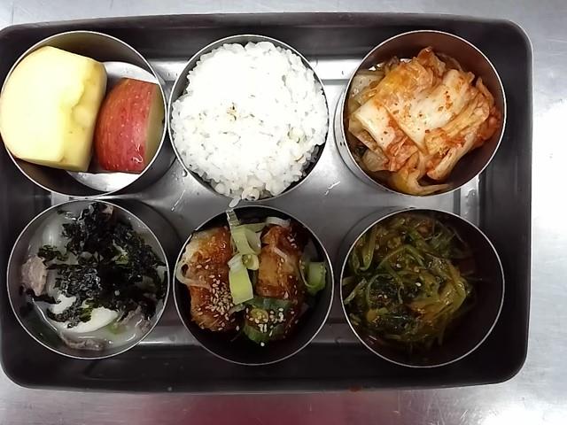 석식: 율무밥, 떡국, 고등어고추장양념구이, 참나물된장무침, 배추김치, 사과
