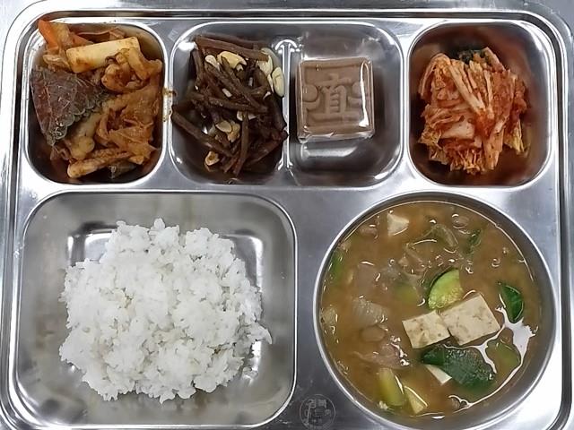 석식: 찰보리밥, 청국장찌개, 우엉땅콩조림, 주꾸미철판볶음, 배추김치, 직지빵