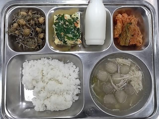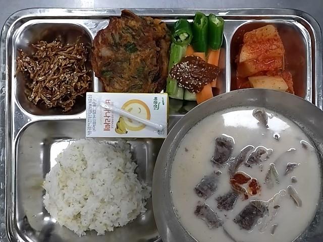 조식: 쌀밥, 들깨감자옹심이국, 멸치찹쌀콩조림, 야채계란찜, 배추김치, 장액티브요구르트