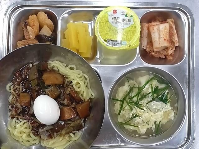 석식: 쌀밥, 김치어묵국, 깻잎순무침, 닭갈비, 두부엿장구이, 석박지, 청포도푸딩