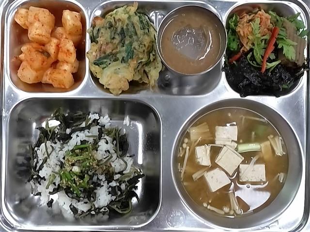 중식: 곤드레나물밥, 팽이된장국, 도토리묵김치무침, 오징어부추전, 깍두기, 미숫가루냉차
