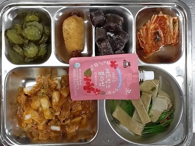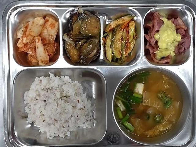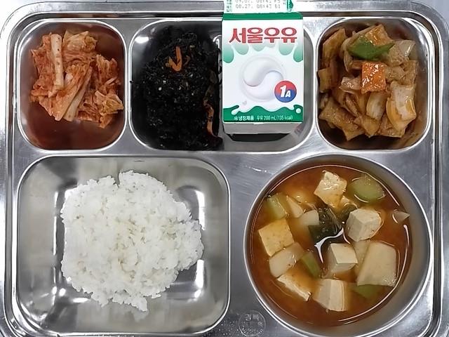조식: 쌀밥, 애호박고추장찌개, 건파래무침, 어묵볶음, 배추김치, 우유
