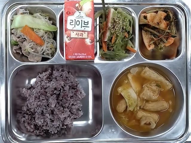 중식: 찰흑미밥, 김치어묵국, 미역줄기볶음, 돈육숙주불고기, 총감김치, 리치에이드