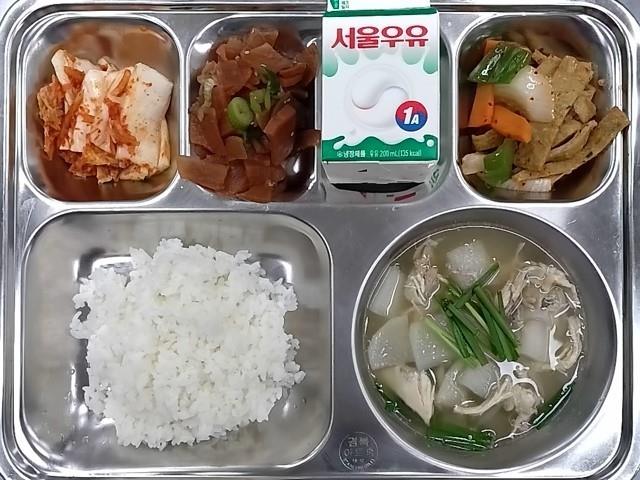 조식: 쌀밥, 닭곰탕, 오복채무침, 어묵볶음, 배추김치, 우유