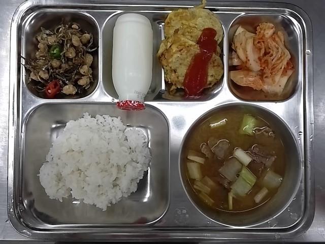 조식: 쌀밥, 한우차돌된장찌개, 멸치찹쌀콩조림, 민속고기완자전, 배추김치, 장액티브요구르트