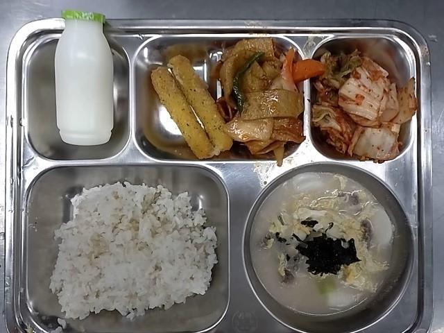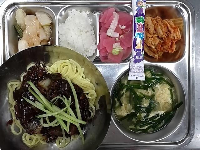 중식: 쌀밥, 계란부추국, 자장면, 단무치무침, 탕수육, 배추김치, 짜먹는 요구르트