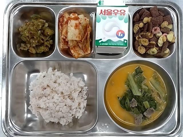 조식: 차수수밥, 사골우거지국, 오이지무침, 배추김치, 시리얼+우유