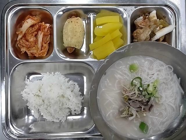 2. 중식: 쌀밥, 쌀국수, 닭봉간장조림, 배추김치, 스틱단무지, 롤링핫도그
