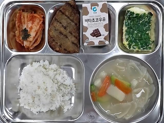 조식: 찰보리밥, 감자수제비국, 야채계란찜, 언양식불고기, 배추김치, 초코우유