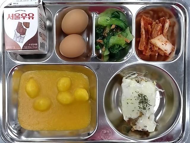 조식 : 호박죽+새알심,스테이크프리타타,청경채나물,배추김치,맥반석계란,초코우유