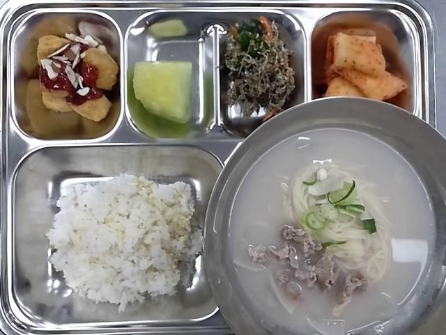중식 : 찰기장밥,설렁탕+소면,두부가라아게강정,멸치풋고추조림,석박지,조각메론