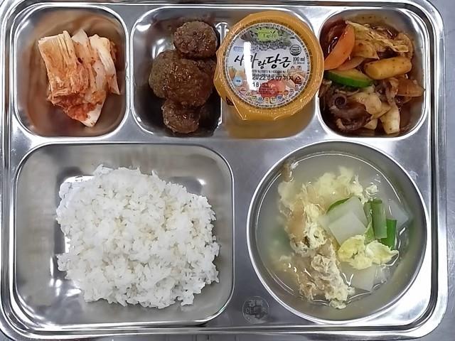 조식 : 현미찹쌀밥,북어채계란국,주꾸미야채볶음,크린베리미트볼,배추김치,케플주스