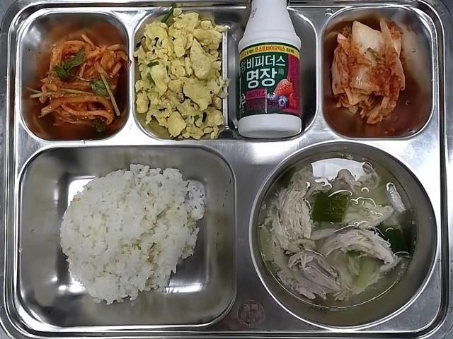조식 : 기장밥,닭곰탕,부추달걀볶음,무미나리생채,배추김치,비피더스