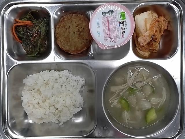조식 : 현미찹쌀밥,들깨감자옹심이국,어니언떡갈비.매실양념깻잎지,배추김치,한끼오토 요거톡