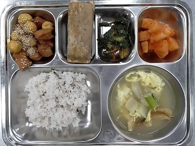 조식 ; 혼합잡곡밥,북어계란국,돈육메추리알장조림,근대고추장나물,깍두기,메밀김치전병