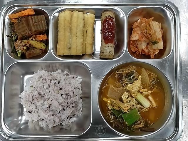 중식 : 혼합잡곡밥,닭개장,갈치구이,도토리묵야채무침,배추김치,베트남식 롤 짜조