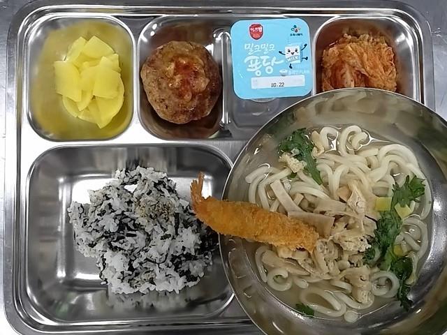 중식 : 김가루밥(추가),새우튀김우동,피자폭탄스테이크,저염 단무지,배추김치,플레인요거트