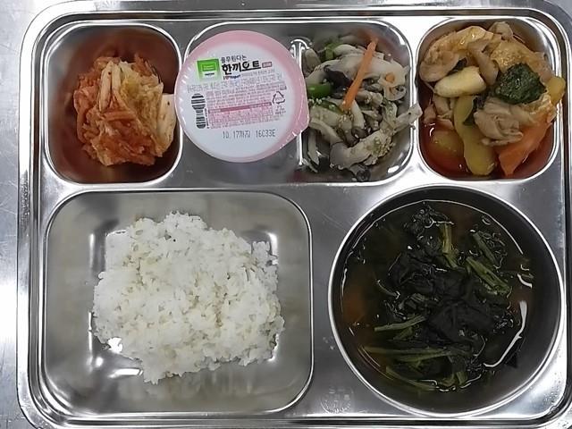 조식 : 찰보리밥,시금치된장국,춘천닭갈비+치즈떡,느타리피망볶음,배추김치,요거트(한끼오트)