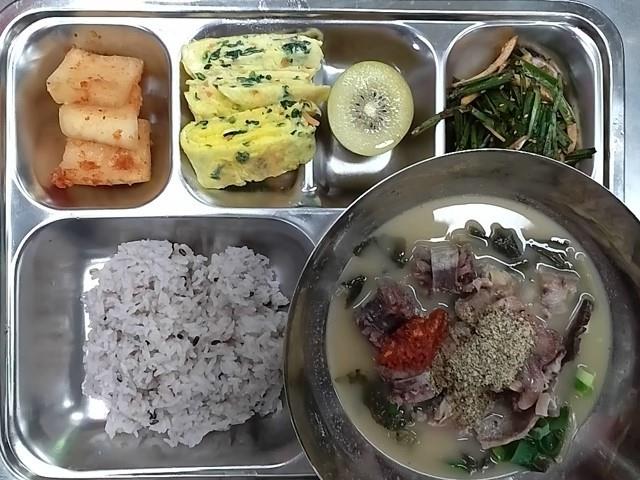 중식 : 혼합10곡밥,순대국,시금치계란말이,부추무침,석박지,골드키위