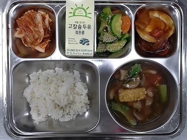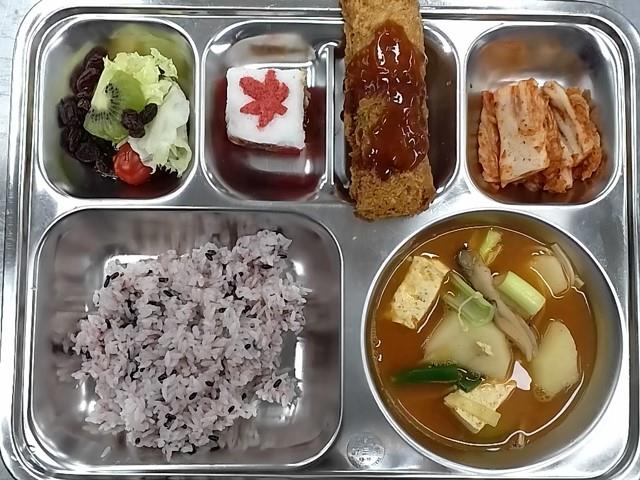 석식 : 찰흑미밥,감자고추장찌개,치즈돈가츠+브라운소스,양상추황도샐러드,단풍설기