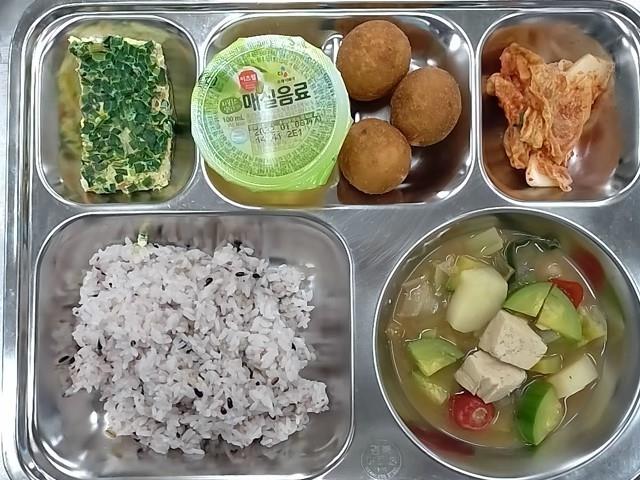 조식 : 혼합10곡밥,두부된장찌개,야채계란찜,치즈불고기피자볼,배추김치,매실음료