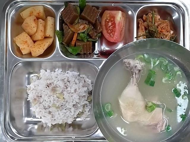 중식 : 10곡영양찰밥,닭다리삼계탕,도토리묵야채무침,통배추겉절이,석박지,꿀 얹은 토마토
