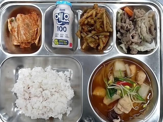 석식 : 차수수밥,매기매운탕,돈육매실청불고기,마늘쫑오이지무침,배추김치,유산균음료