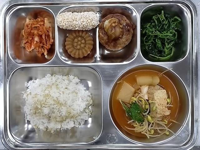 중식 : 보리밥,동태찌개,크림폭탄스테이크,비름나물,배추김치,찹쌀유과