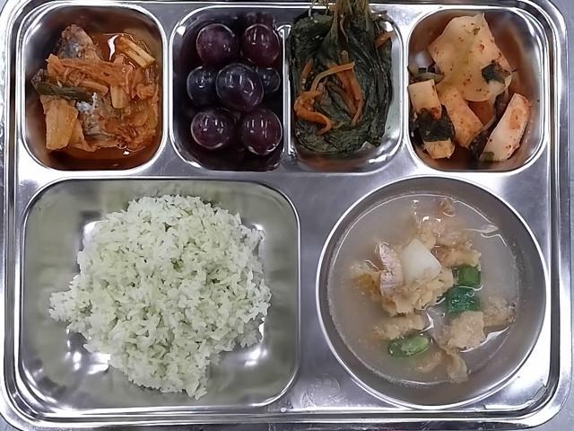 중식 : 클로렐라밥,북어감자국,고등어김치조림,깻잎찜,총각김치,거봉 포도