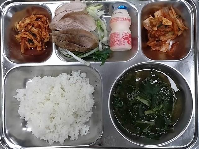 석식 : 백미밥,근대된장국,오향장육+파채,무말랭이무침,보쌈김치,요구르트