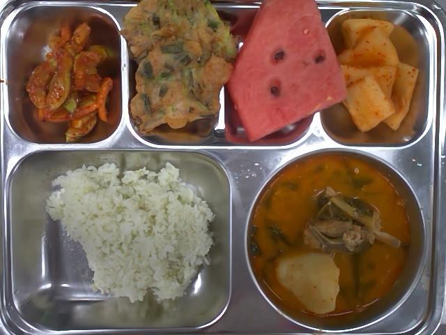 중식 : 클로렐라밥,등뼈감자탕,해물파전,오이도라지무침,석박지,수박