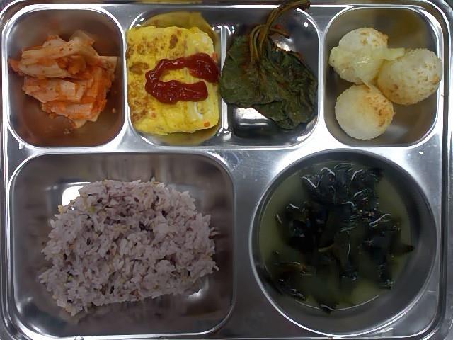 조식 : 혼합10곡밥,미역국,햄계란말이,밀크모짜렐라치즈볼,매실양념깻잎지,배추김치