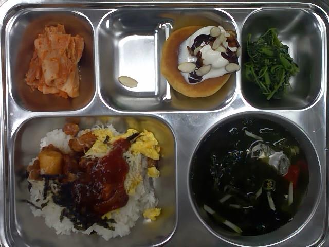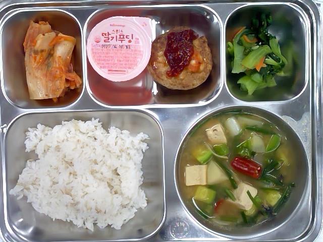 조식 : 보리밥,우렁된장찌개,피자폭탄스테이크,청경채나물,배추김치,딸기푸딩
