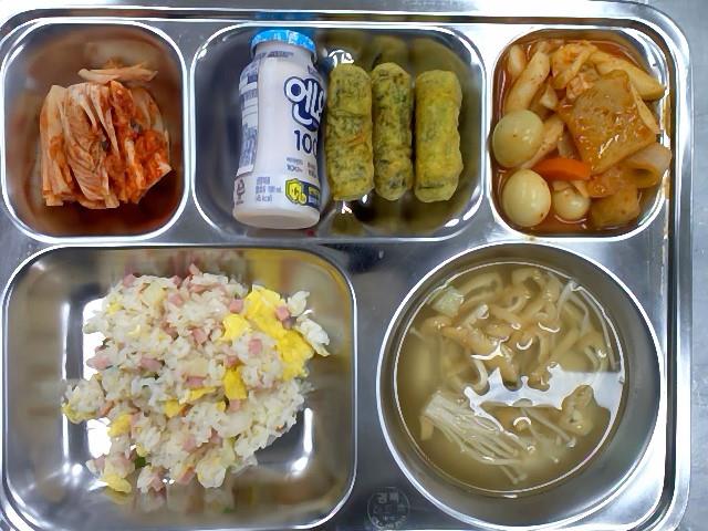 석식 : 계란볶음밥,유부장국,국물떡볶이,김말이튀김,배추김치,요구르트