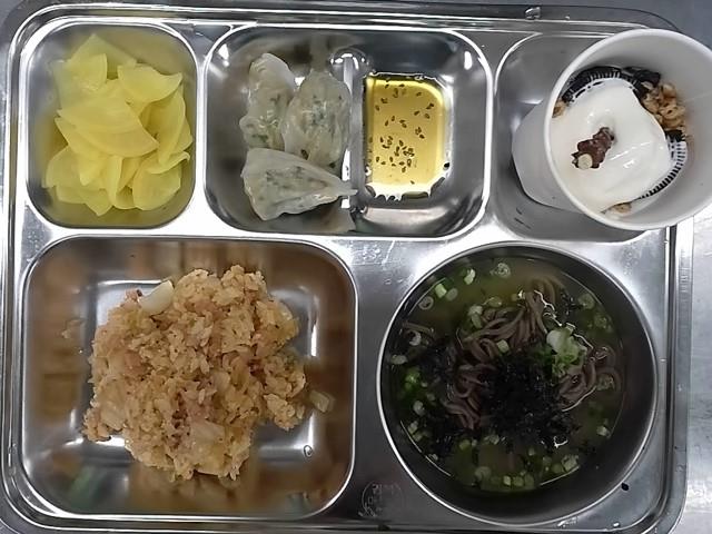 중식 : 날치알김치볶음밥,메밀소바,복만두찜+초간장,단무지,퐁크러쉬