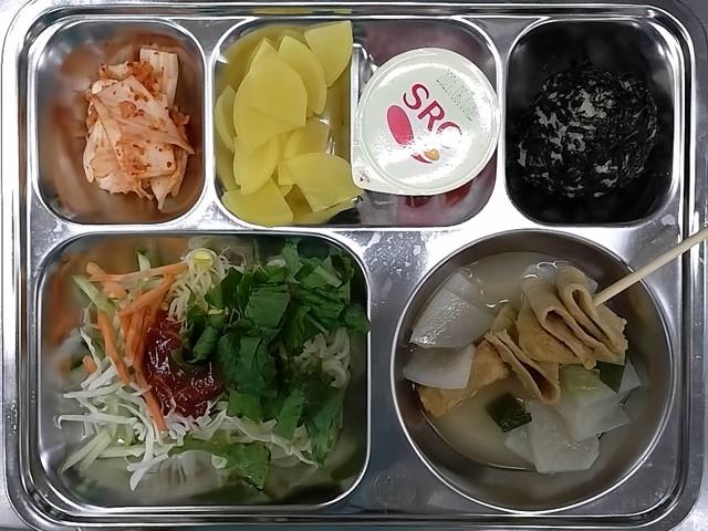중식 : 참치마요주먹밥,쫄면,꼬치어묵국,배추김치,저염단무지,아이스크림