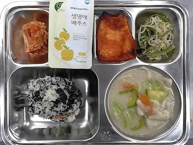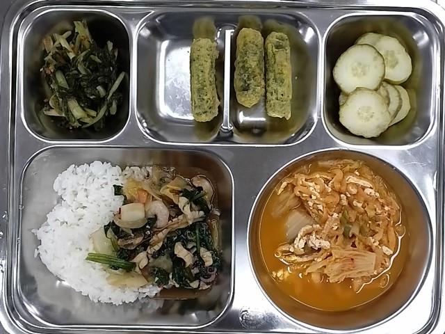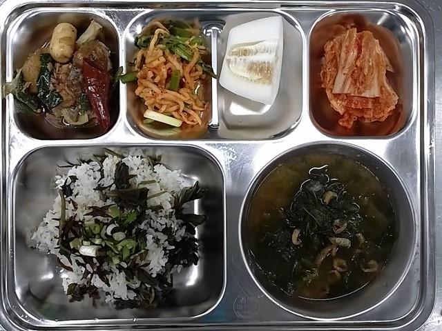 중식 : 곤드레톳밥,건새우아욱국,치즈떡찜닭,무생채,배추김치,참외