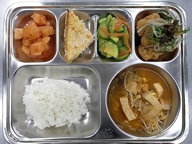 조식 : 쌀밥,김치콩나물국,파닭순살마쵸킹,애호박새우젓볶음,깍두기,몬테크리스토