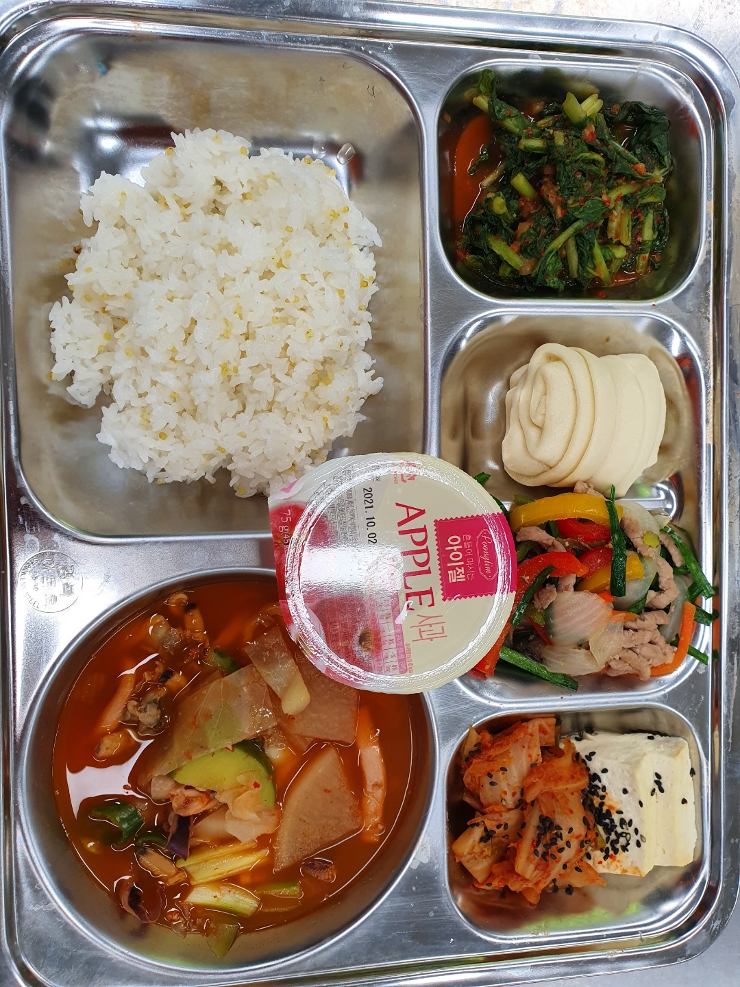 중식 : 기장밥,해물모듬국,고추잡채&꽃빵,두부김치조림,열무김치,사과곤약젤리