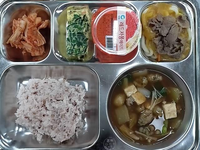 석식 : 차수수밥,미더덕된장국,불고기카레우동,참치계란말이,배추김치,레드자몽에이드
