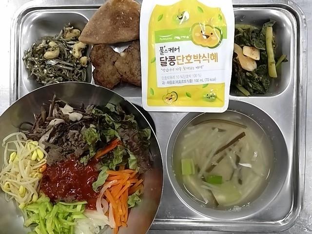중식: 전주비빔밥, 다시마무국, 직화떡갈비, 캐슈넛멸치볶음, 열무김치, 수수부꾸미, 단호박식혜