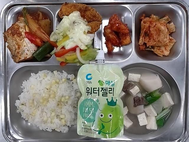 중식: 찰옥수수밥, 쇠고기토란국, 갈치무조림, 도라지강정, 치킨샐러드, 배추김치, 매실음료