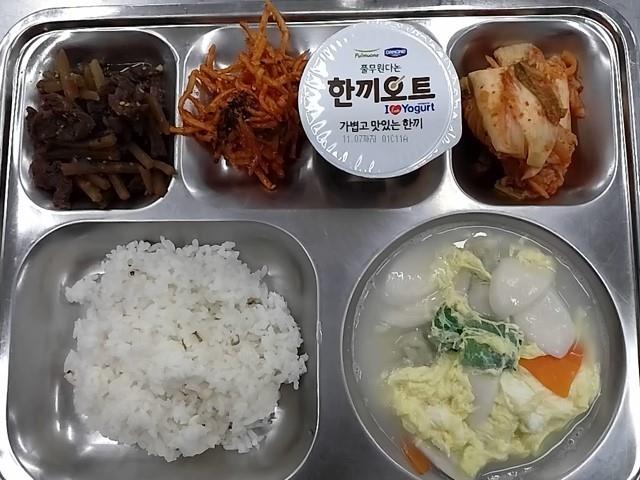 조식: 율무밥, 떡만두국, 쇠고기우엉조림, 진미채볶음, 배추김치, 요거트