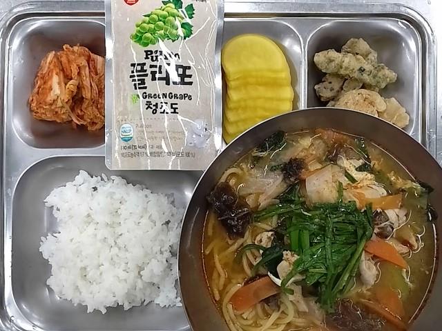 중식: 백미밥ㄴ, 꼬꼬짬뽕, 혼합탕수육+소스, 단무지, 배추김치, 청포도주스