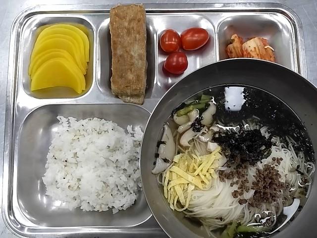 중식: 율무밥, 잔치국수, 불고기메밀전병, 배추김치, 방울토마토