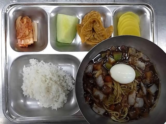 중식: 백미밥, 자장면, 갈비만두, 단무지, 배추김치, 메론