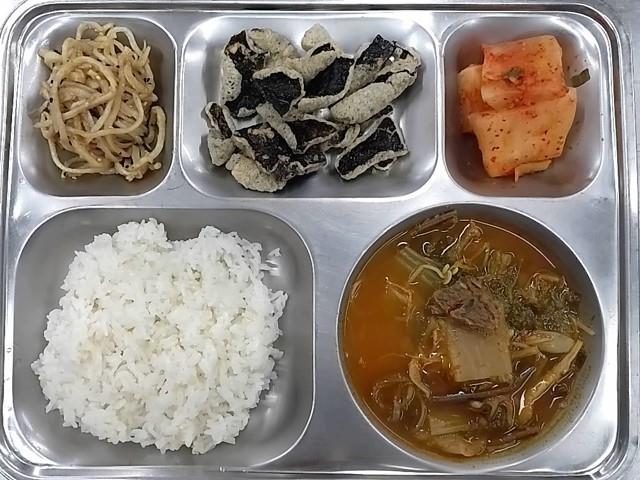 중식: 발아현미밥, 육개장, 진미채간장볶음, 김부각, 석박지
